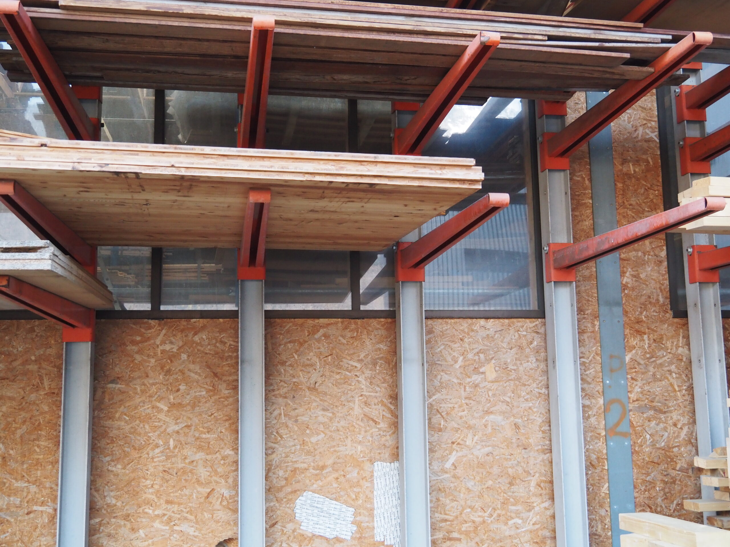 5x poteaux (gris) 465 cm – 20x consoles (rouges) 190 cm