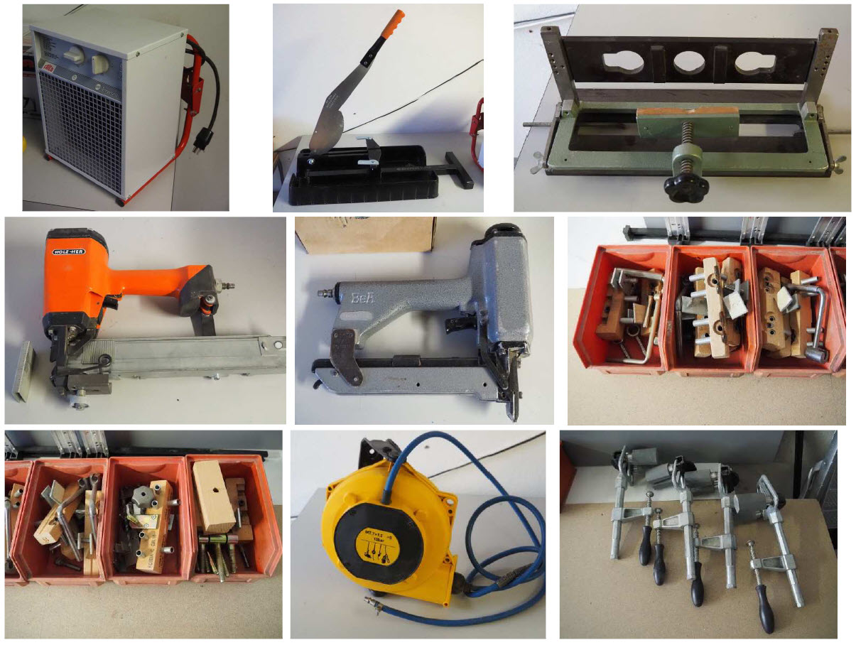 Gab. ANUBA-Chauffage-Agrafeuse-Enrouleur pneum.-Serre-joints-etc (DD)