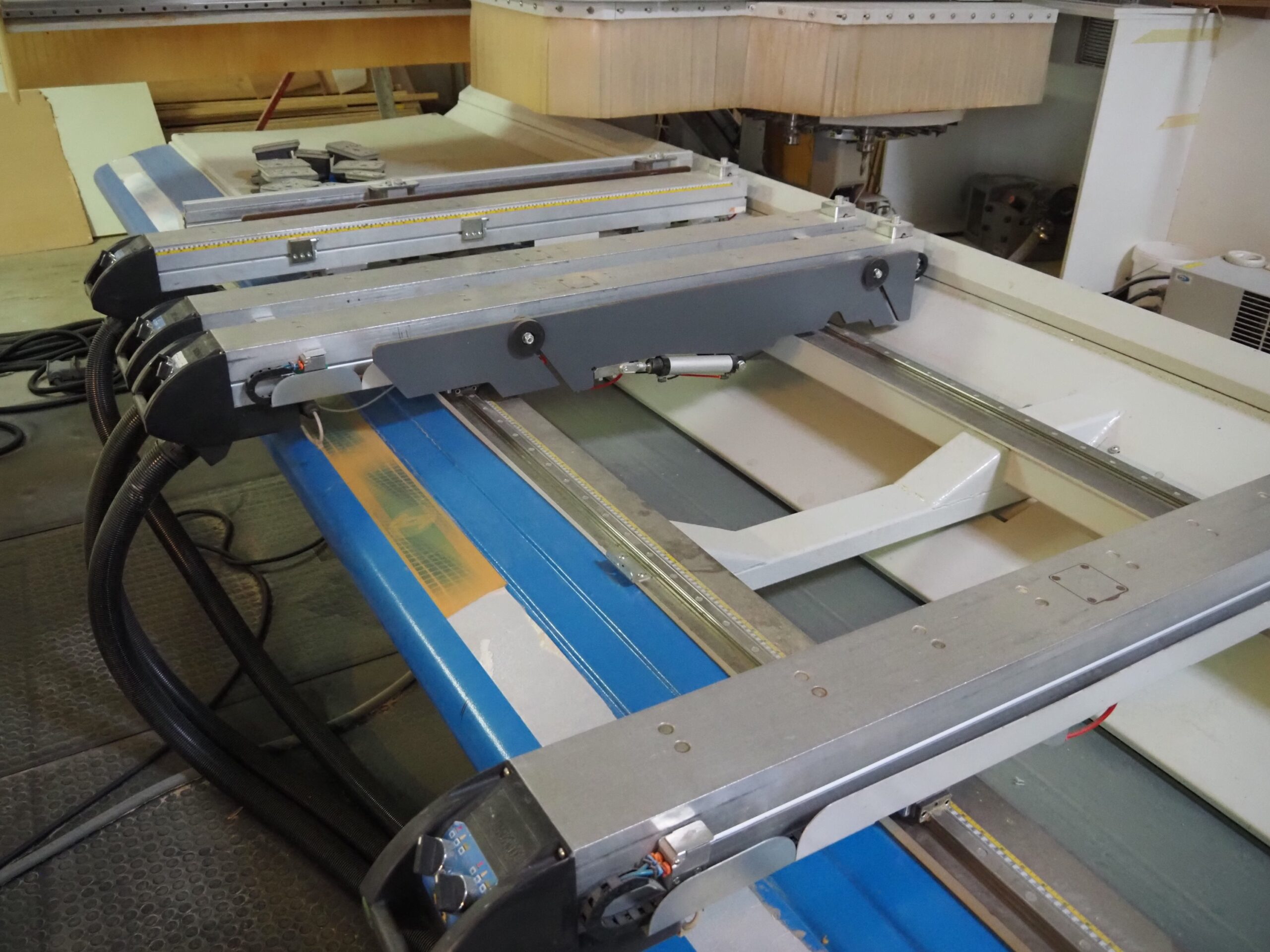 Le groupe froid et le sécheur d’air intégré à la machine sont neufs – Les pompes à vide ont été révisées en 2021 – Le laser au plafond permet le positionnement des ventouses et des pièces à usiner – Le système informatique, la programmation (avec accès internet et USB) sont neuf et ont été mis à jour en 2021.