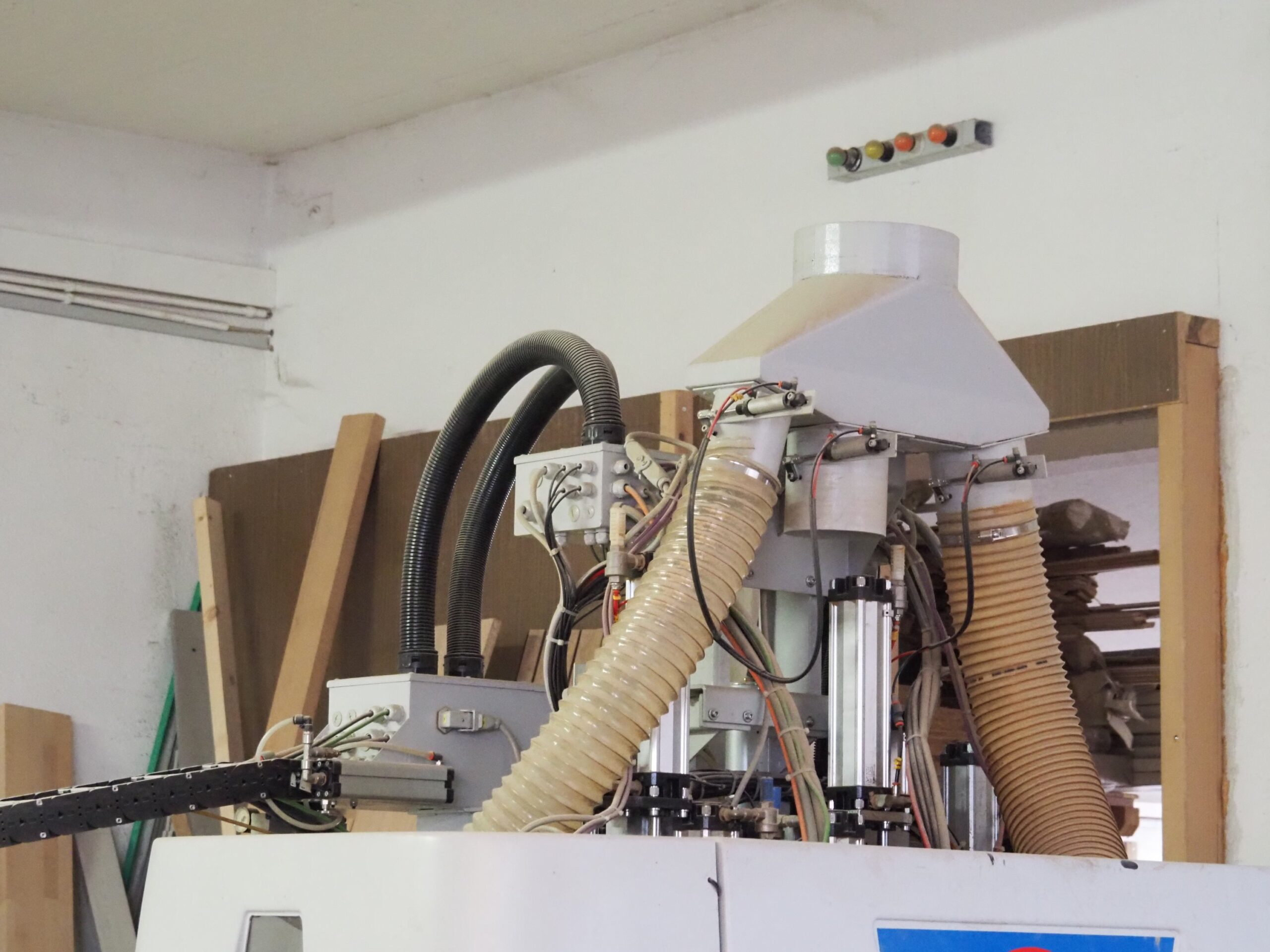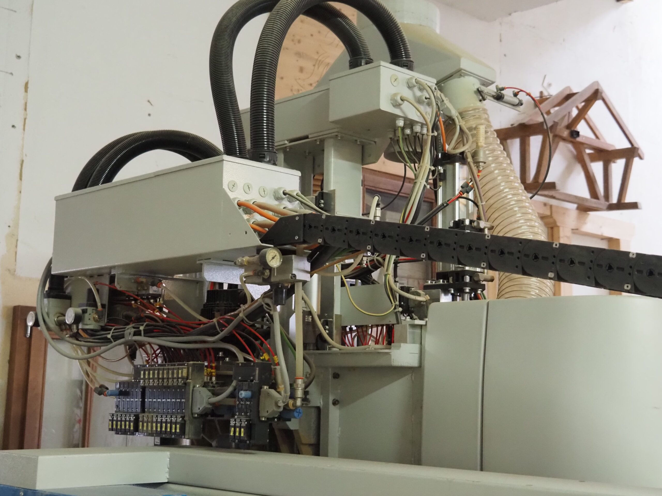 Nombre de tours max t/min = 24.000 tours/minute – Système de serrage des outils ISO 30 – Perceuses horizontale X = 4 – Perceuses horizontales Y = 2 – Scie pour encoche pivotable à 90° – Structure col de cygne – Nombre de consoles = 10 – 2 pompes à vide active + 1 pompe à vide en backup – Dispositif de sécurité type grille et tapis de sécurité –