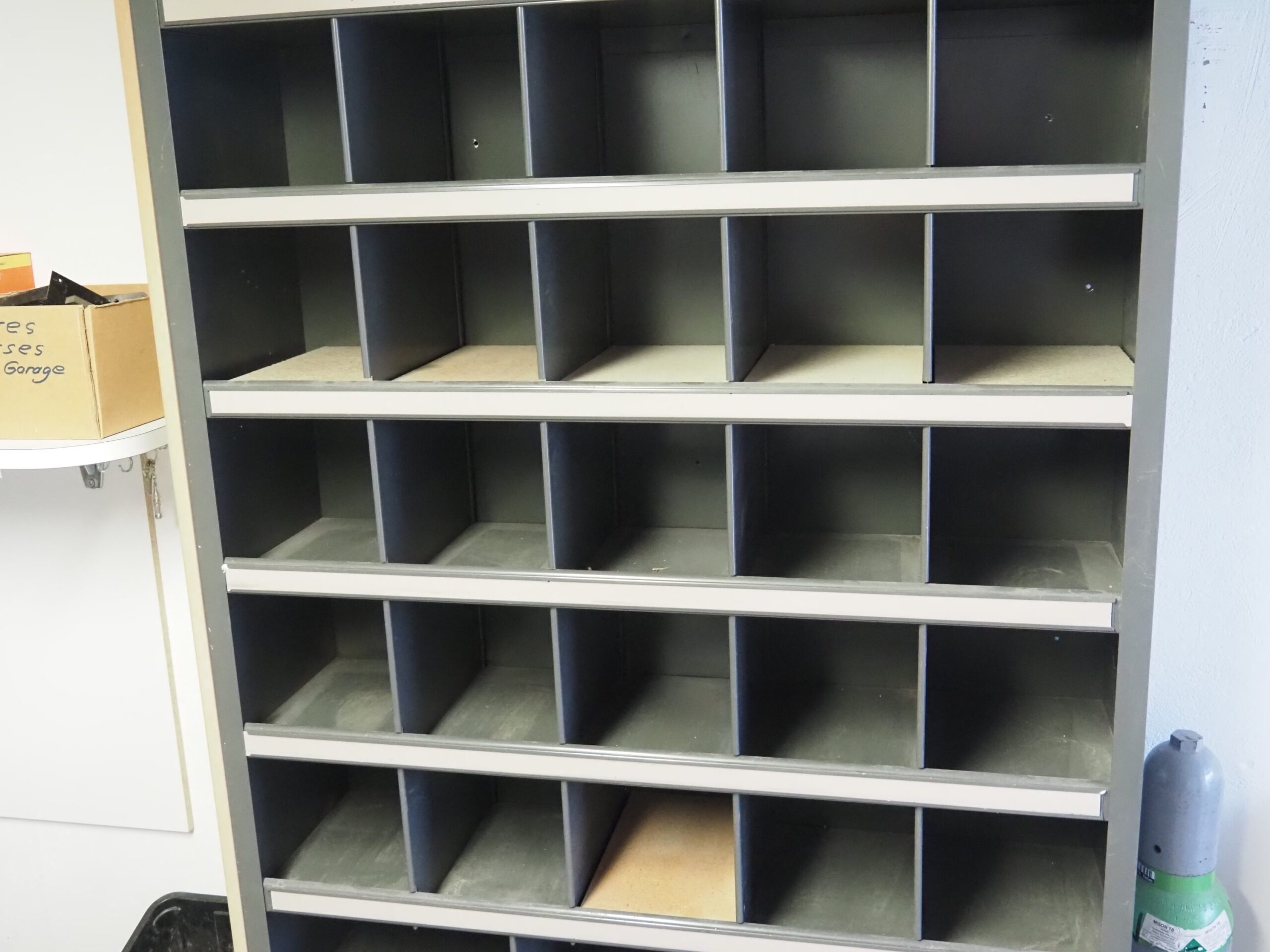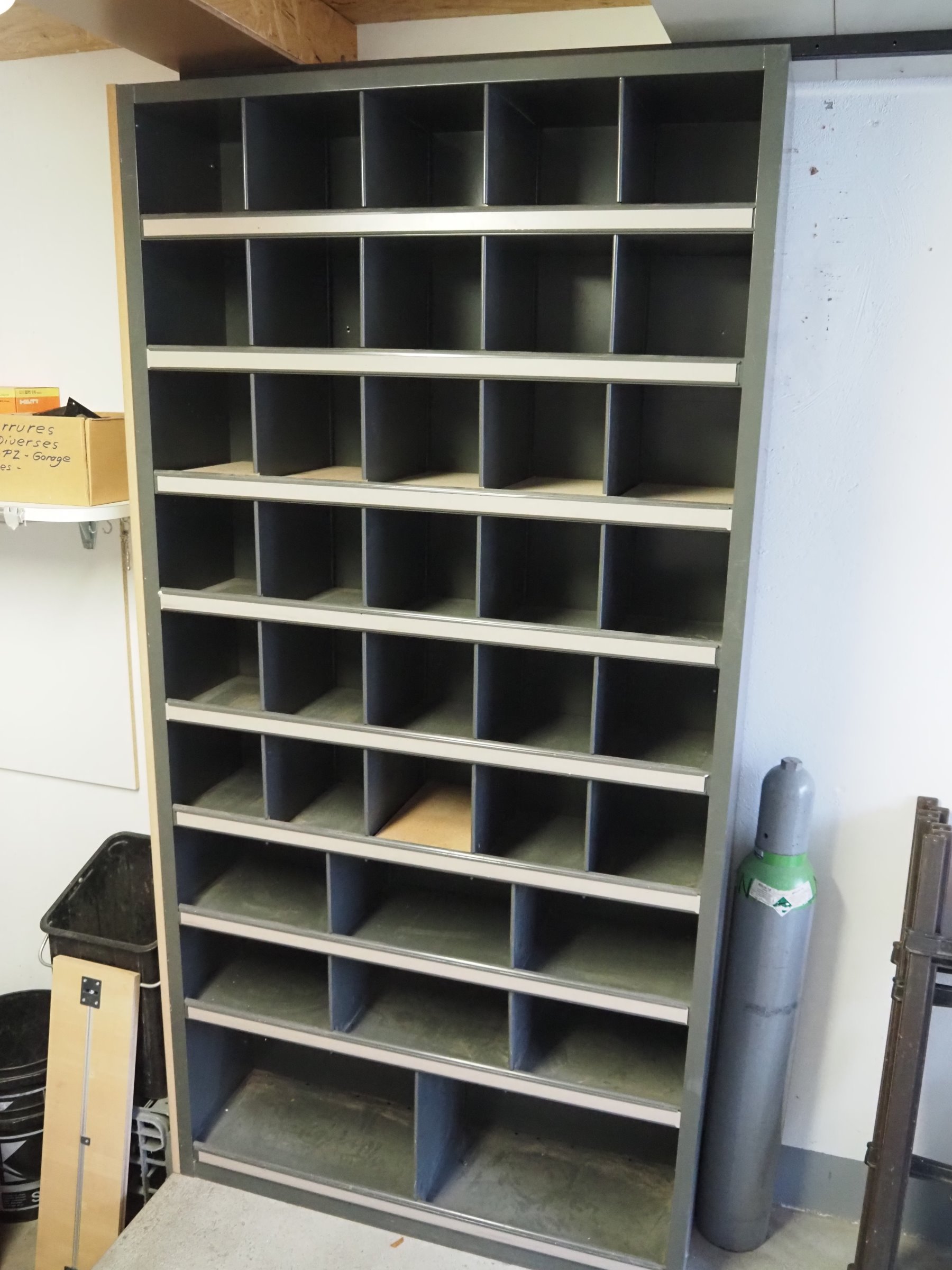 Étagère métallique grise – Tout métal Larg. 100 x prof. 30/prof. utile 28 x haut. 200 cm Bandes porte-étiquettes En très bon état technique et visuel