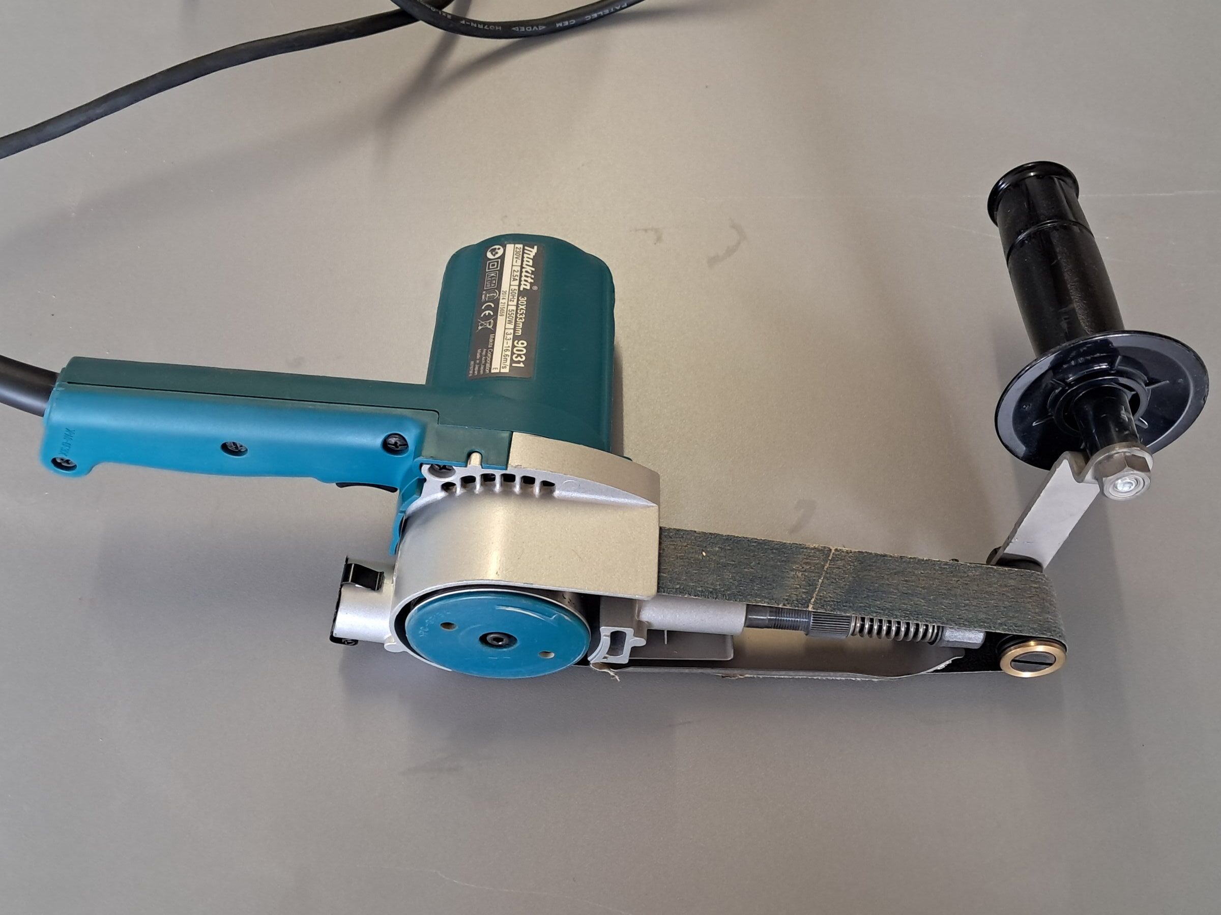 Lime-Ponceuse électrique MAKITA 9301 Largeur de ponçage 30 mm – Rubans 30 x 533 mm 230 Volts – 550 Watts Vitesse de 200-1100 t/min. En bon état technique