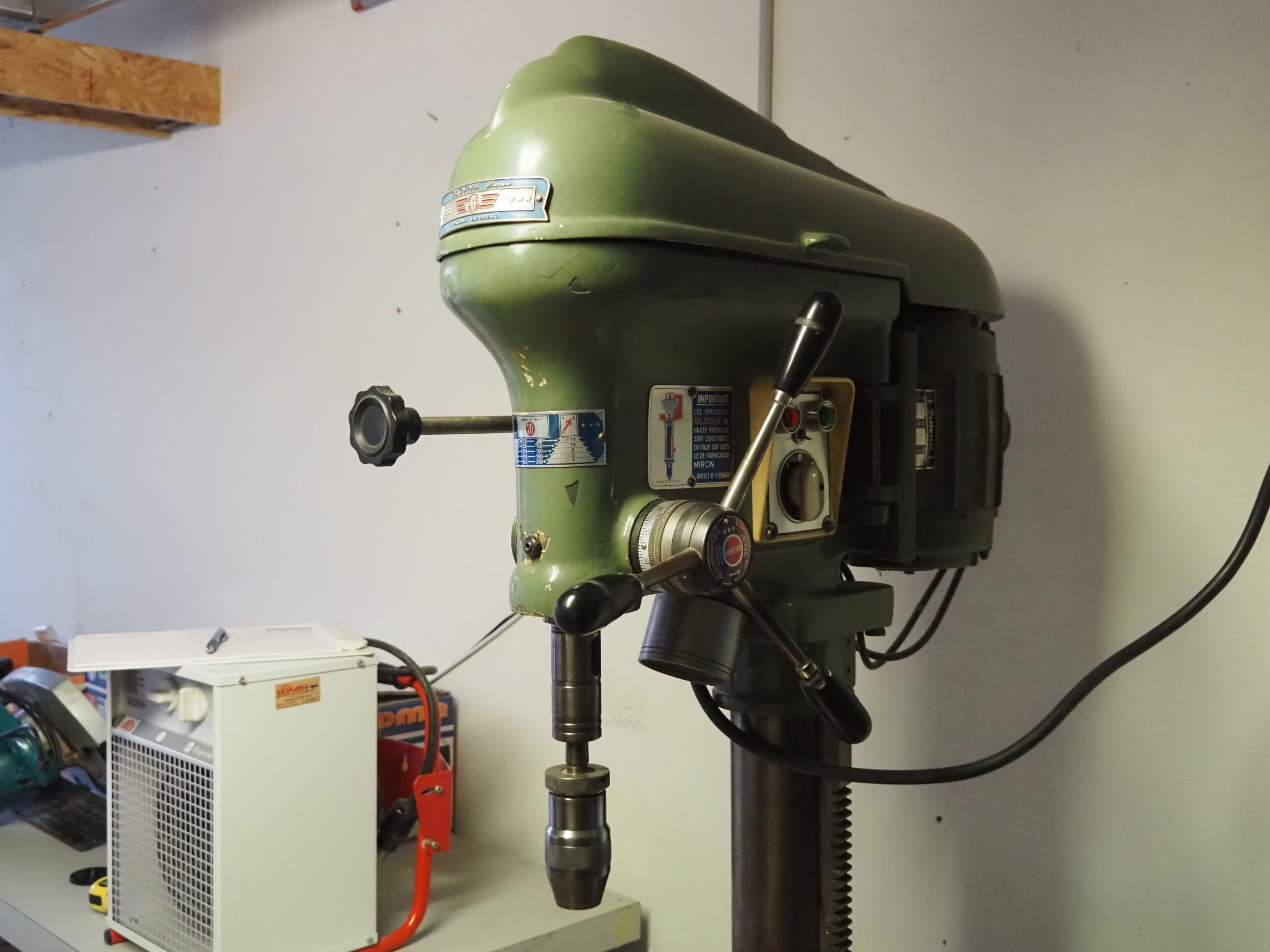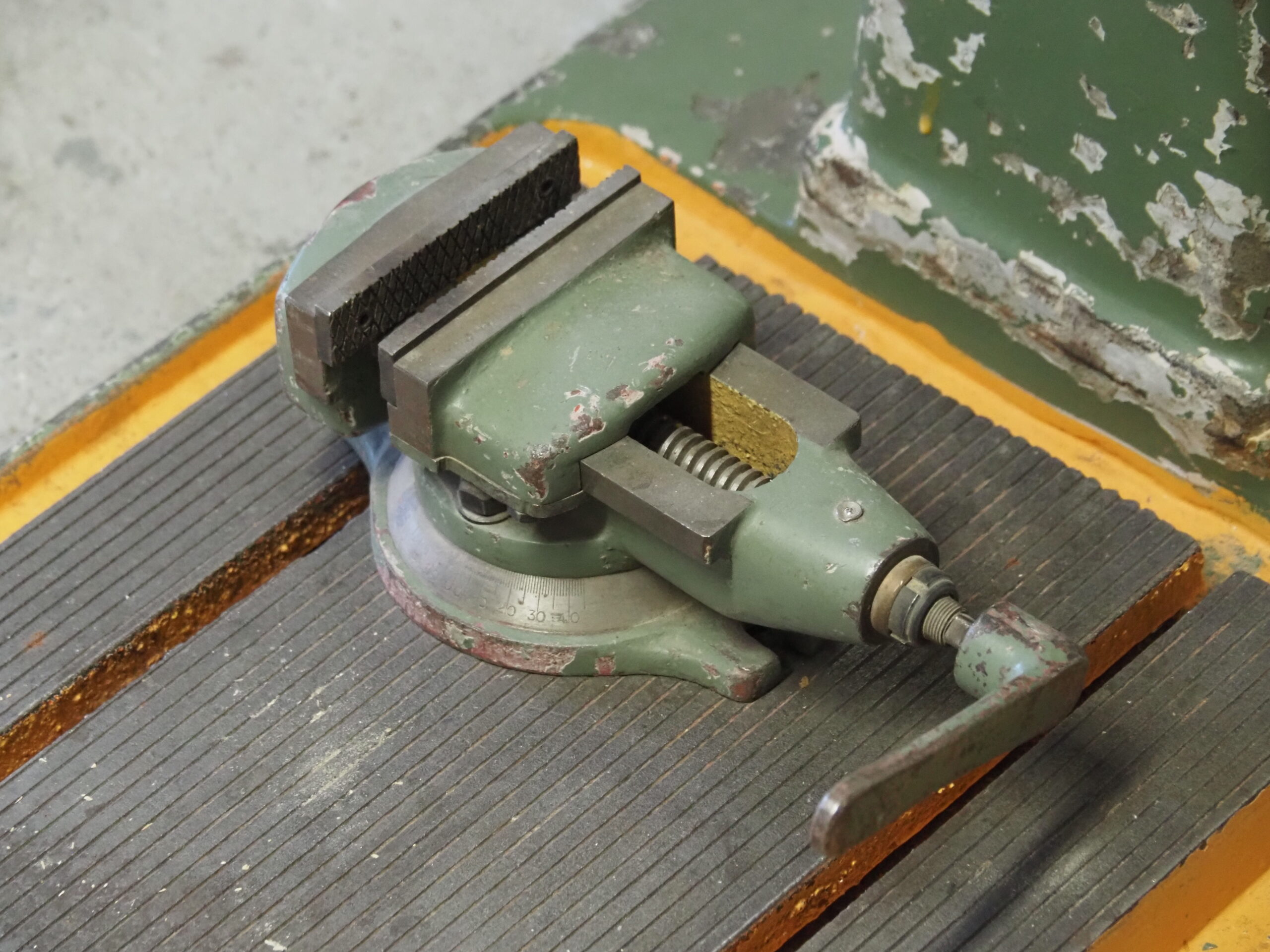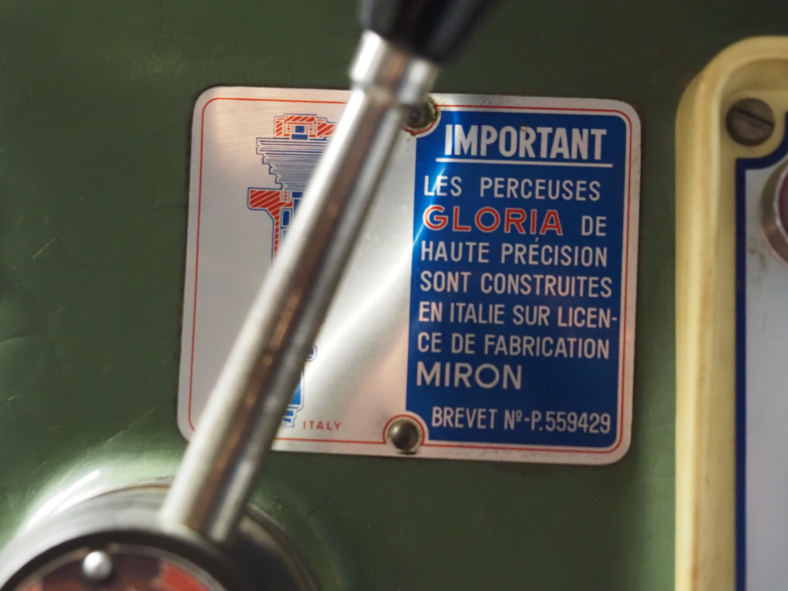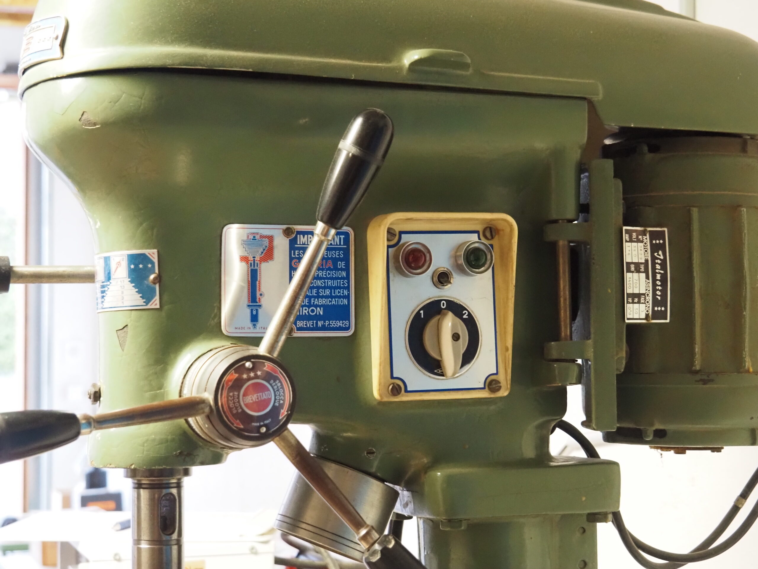 Perceuse à colonne sur pied GLORIA Col de cygne 210 mm – Course 90 mm – Cône CM2 16 vitesses – Interrupteur à 2 vitesses lent-/rapide Avec Etau – 380/400 volts en bon état technique, machine soignée