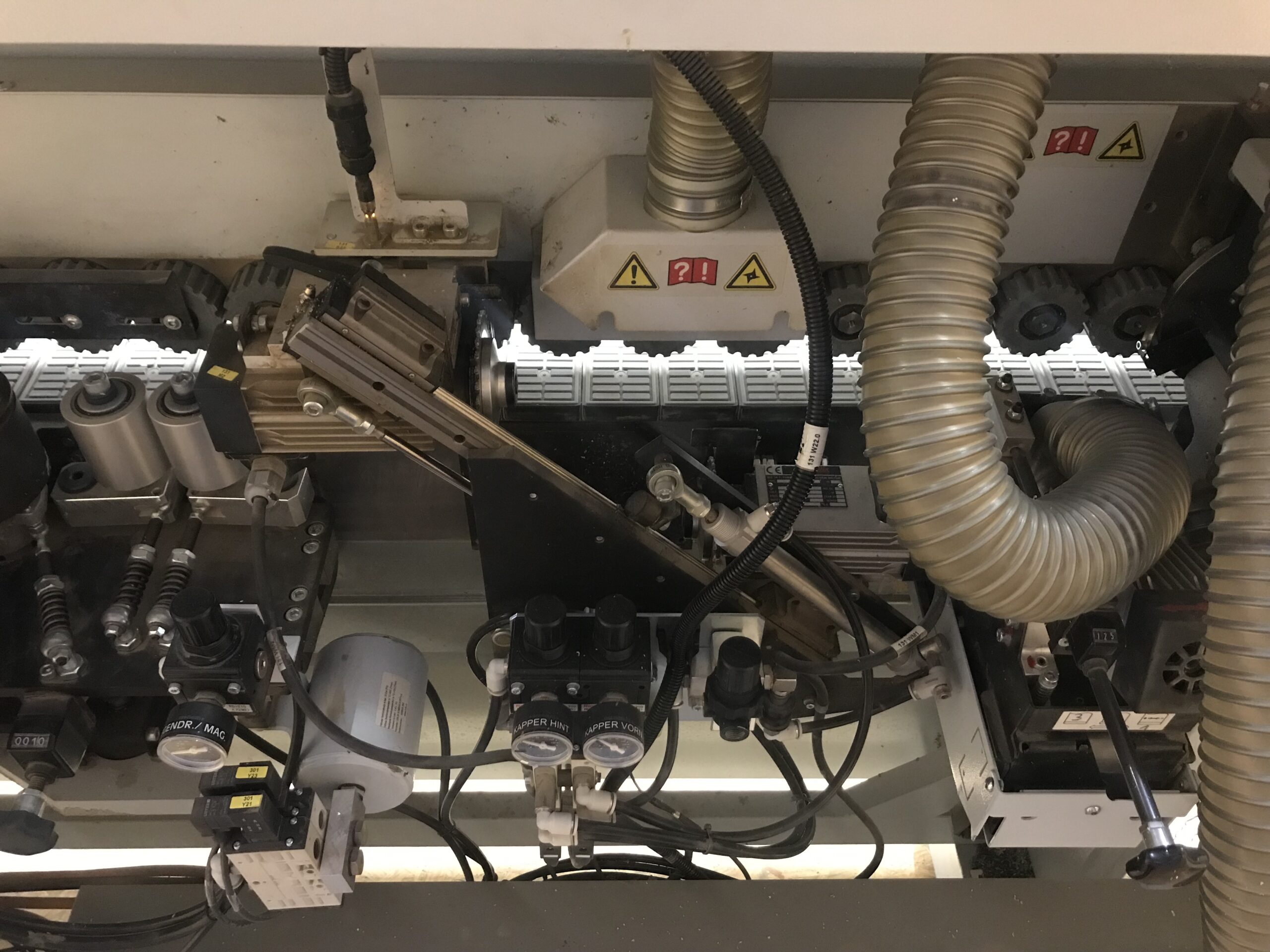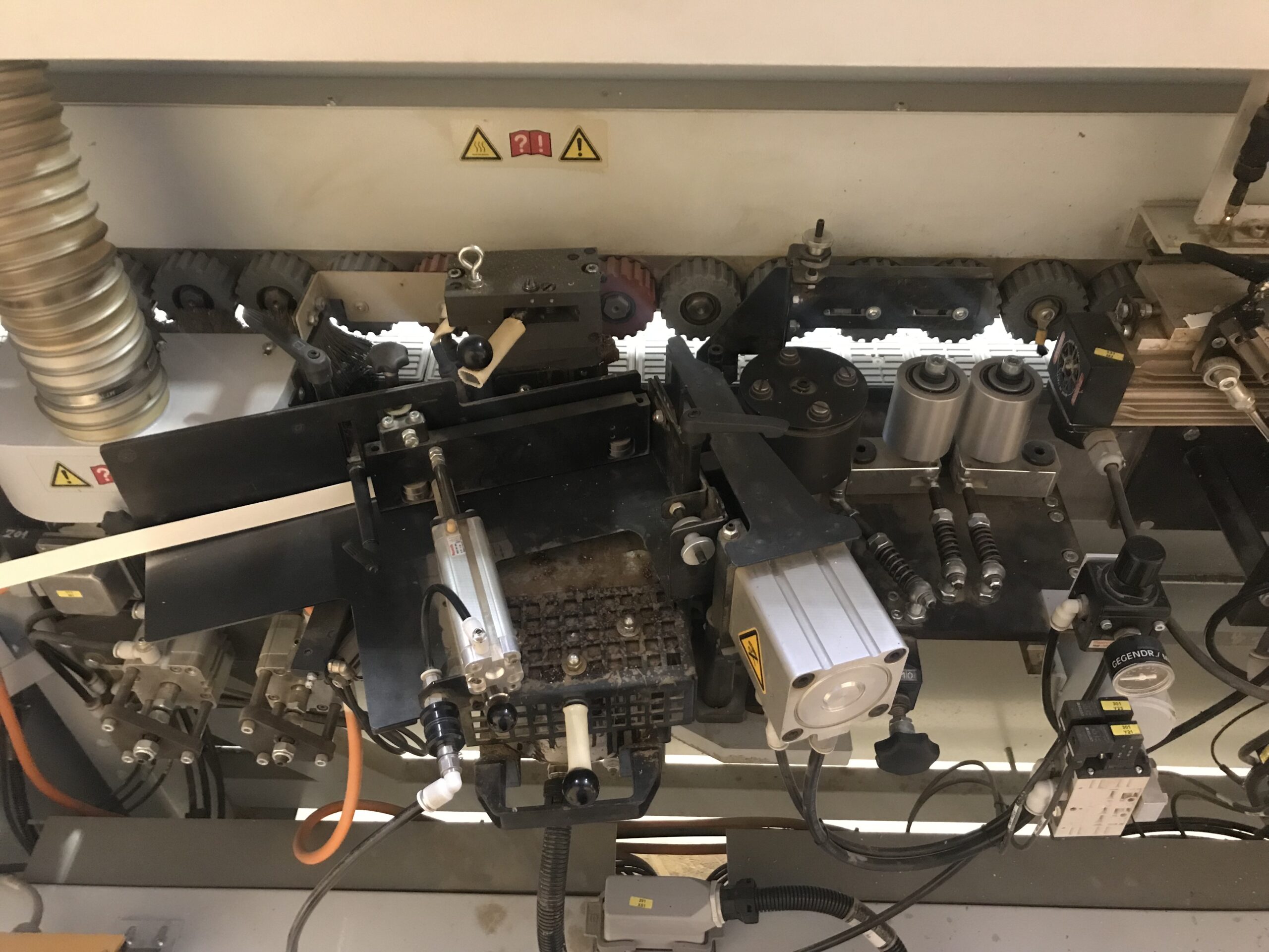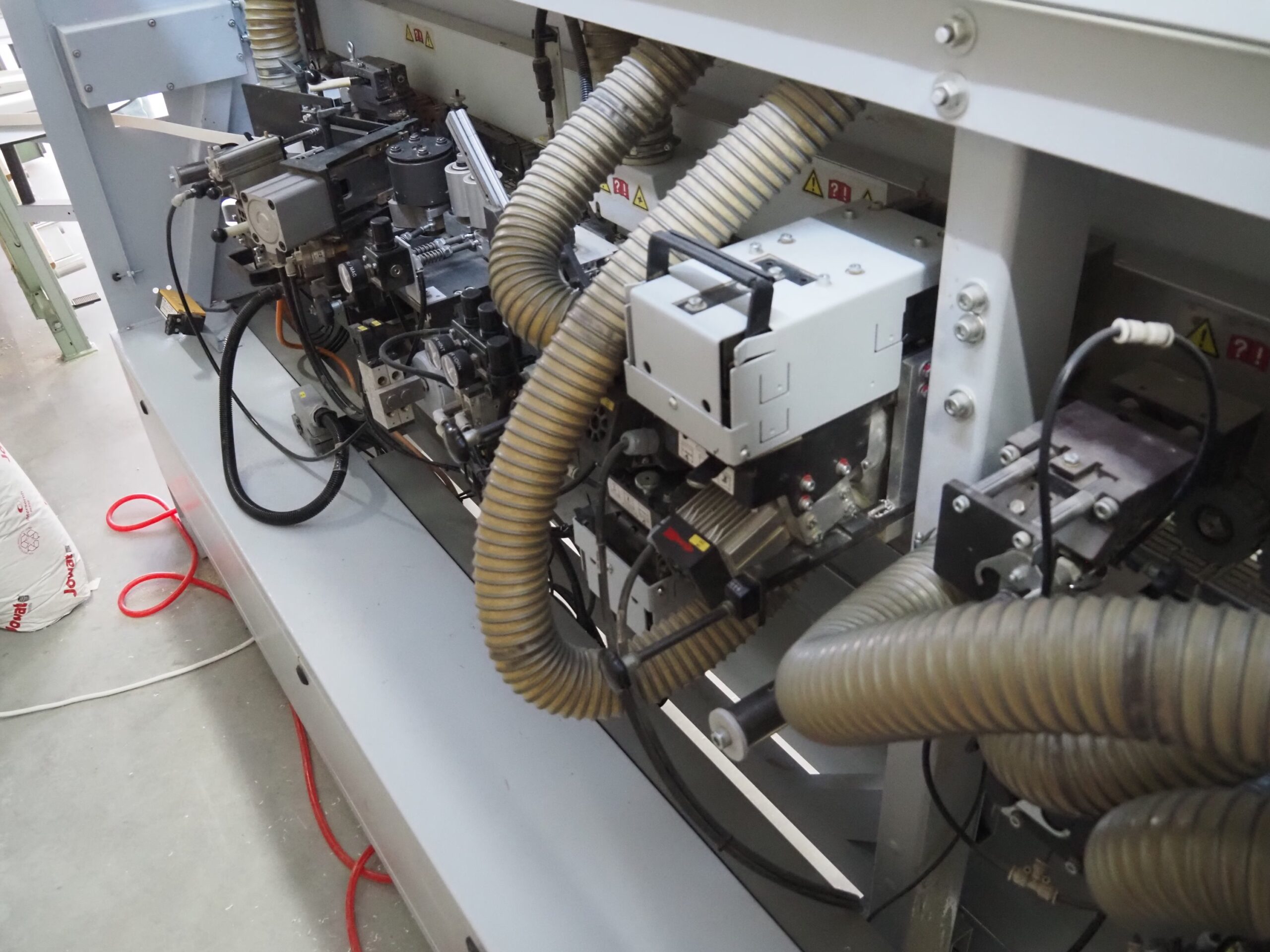 Epaisseur de pièces 8-45 mm – larg. de pièce min. 70 mm – Long. min. de pièces 70 mm – Vitesse d’avancement 8m/min. – Magasin à rouleau – Bac à colle en granules – Bac à colle interchangeable – Unité de dressage : 2x Agrégat de fraises à dresser en Diamant – Agrégat de coupe en bout – Agrégat d’affleurage haut et bas r2 et droit – Agrégat de raclage en surface – Agrégat de polissage – Aspiration de copeaux. – Barre extensible à roulettes
