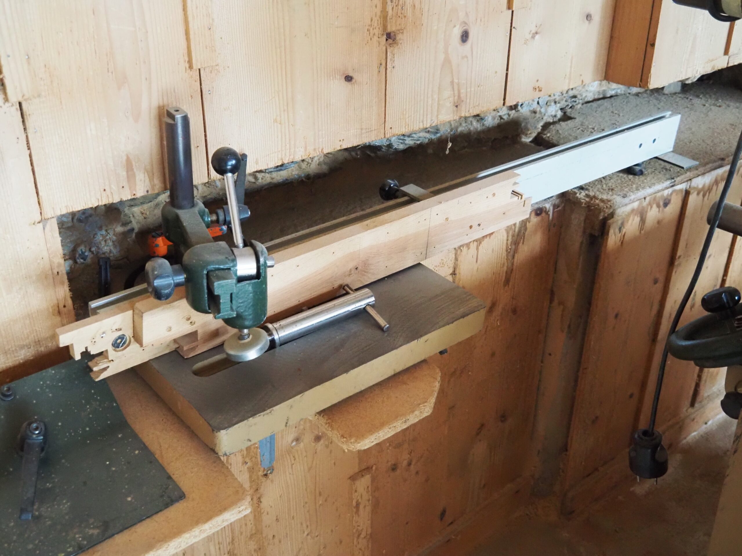Dans le cadre du tenonnage le corps de lame est mobile en largeur de 180 mm (gauche à droite)