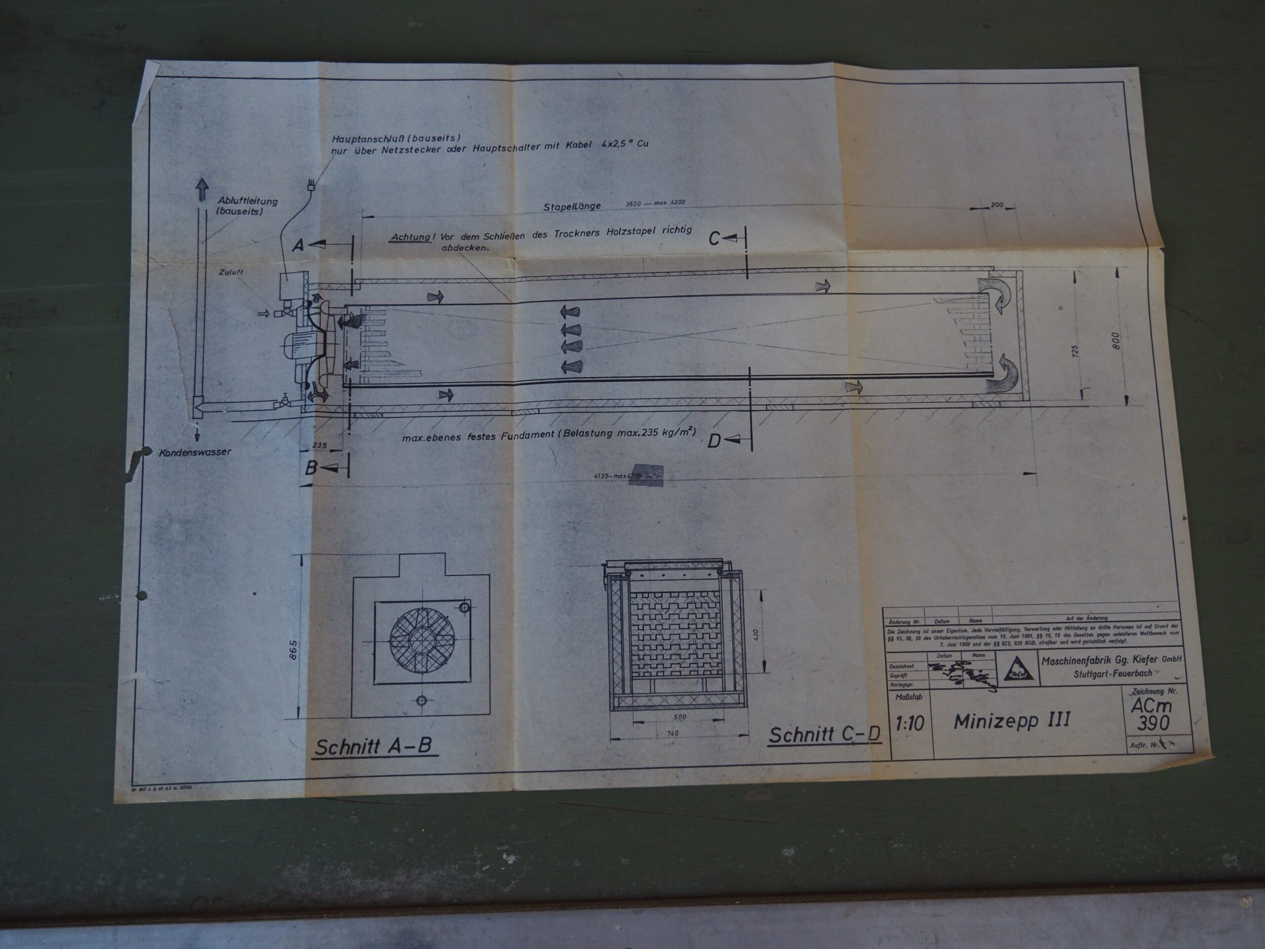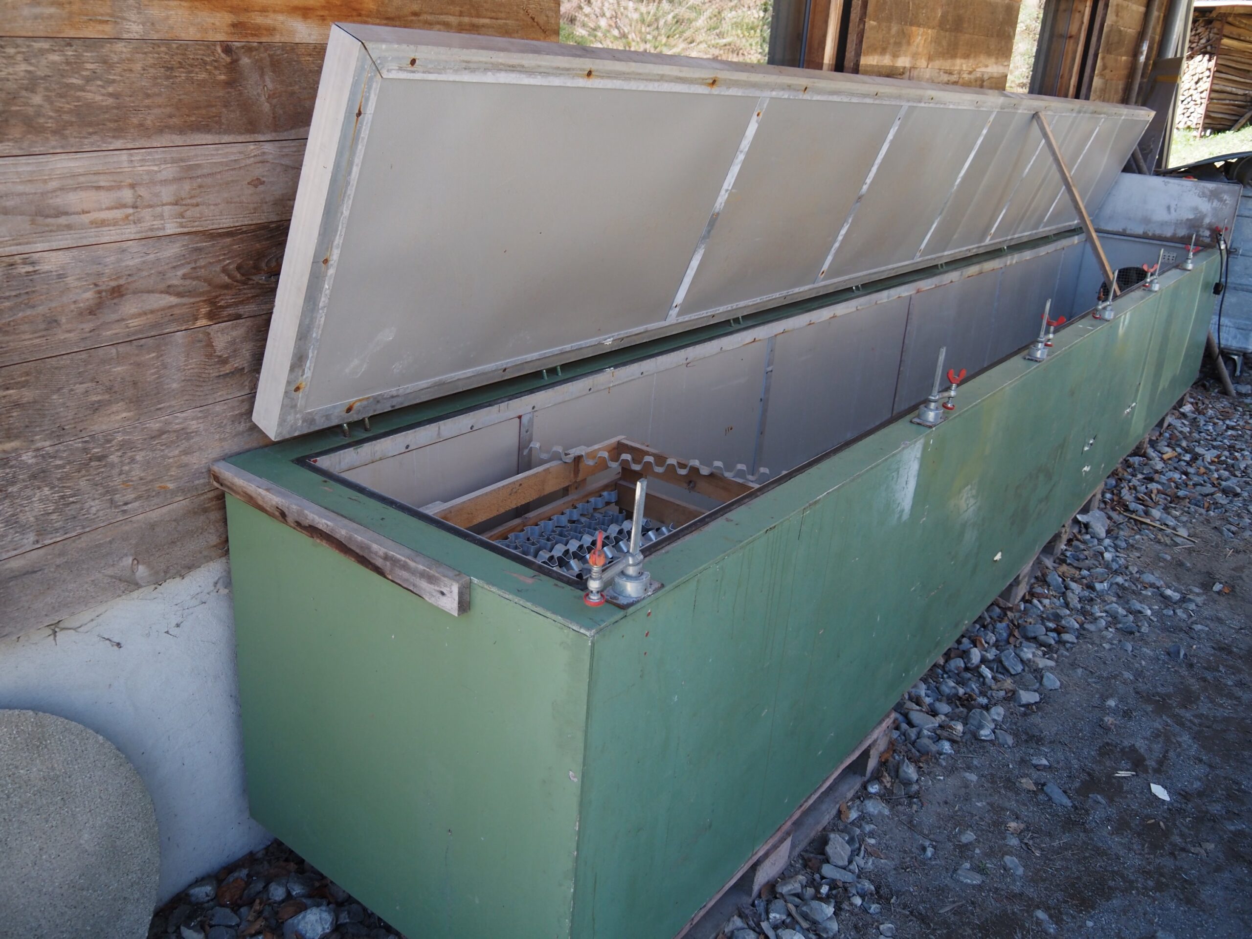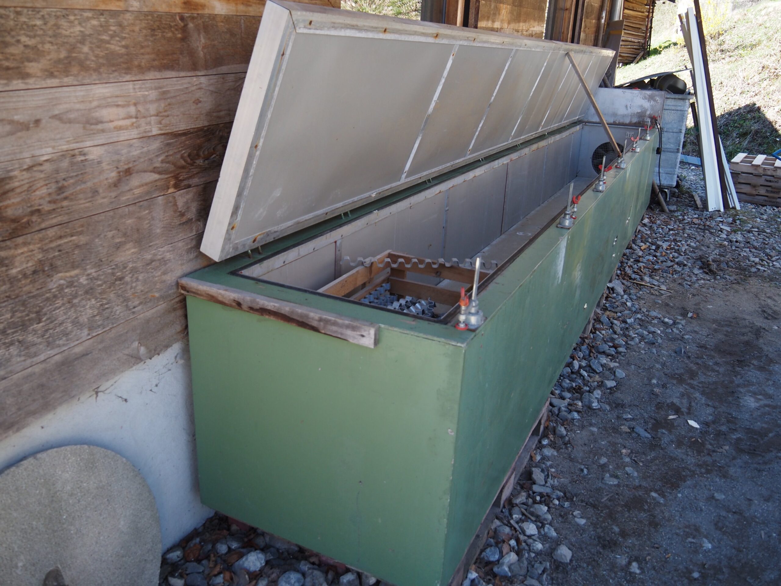 Séchoir en bon état technique et visuel – Le séchoir est actuellement posé sur trois palettes – Se charge à l’élévateur