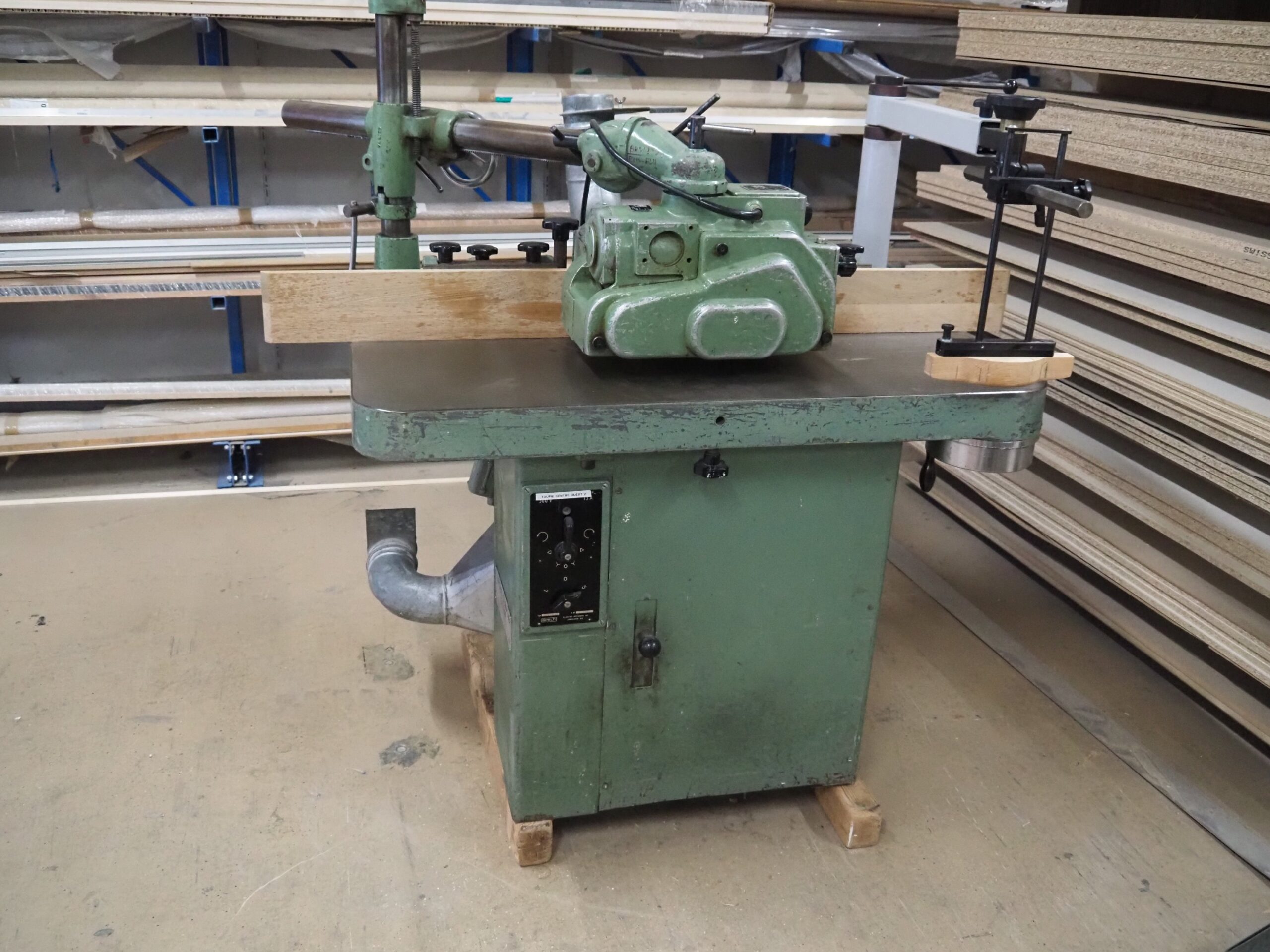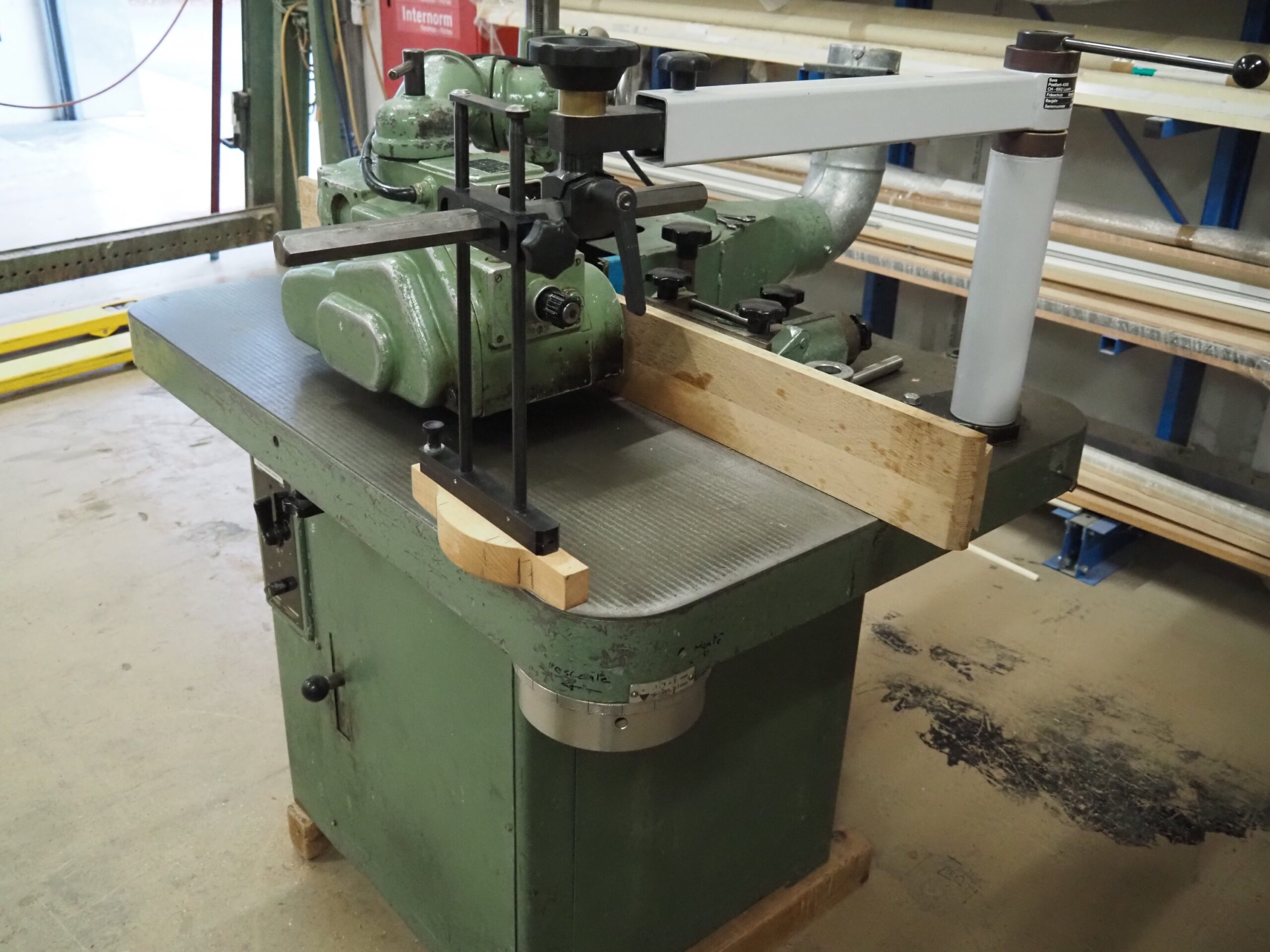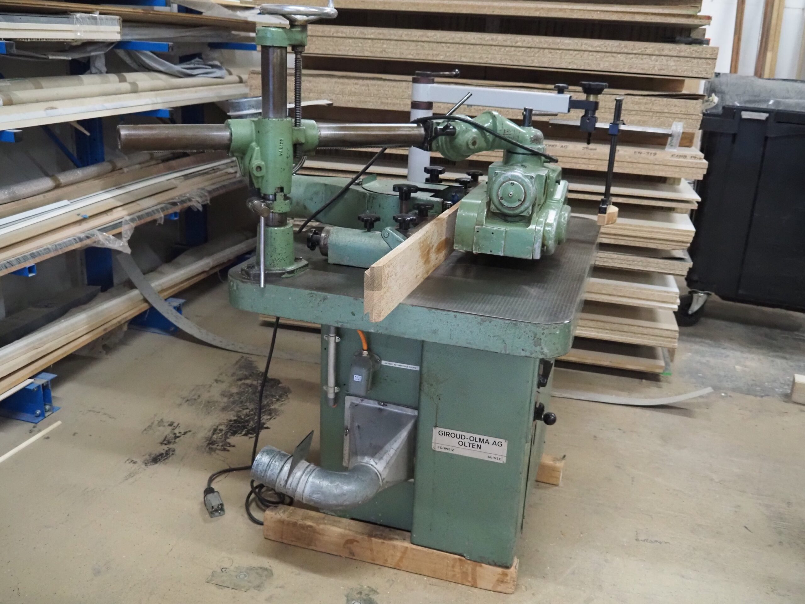 Toupie GIROUD-OLMA Avec entraineur automatique à 3 roues et potence avec protections SUVA Rotation gauche+droite Long. 120 x prof. 105 cm En bon état technique